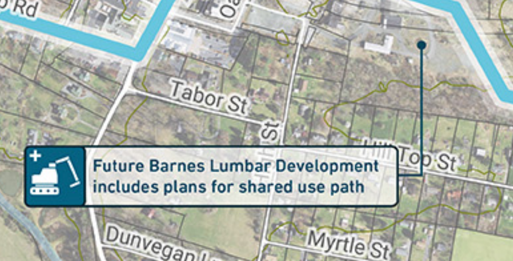 From here, I tend to like route A, the blue line to the south of the map. It has a few more doglegs than the other routes, but I like the possibility for a trailhead...and I like that it provides a shared-use path connection for the future homes at Spring Hill Farms, which otherwise will be just as stranded as any other subdivision in the rural area.